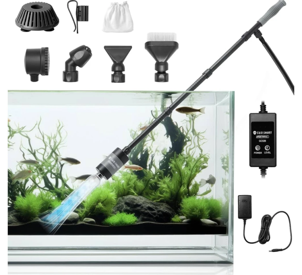 I highly recommend you use a high-quality electric aquarium cleaner to more easily clean the tank’s water and substrate. The XpertMatic Aquarium Gravel Cleaner pumps the water from my tank quickly as well as come with a bunch of attachments to help with the cleaning efforts.