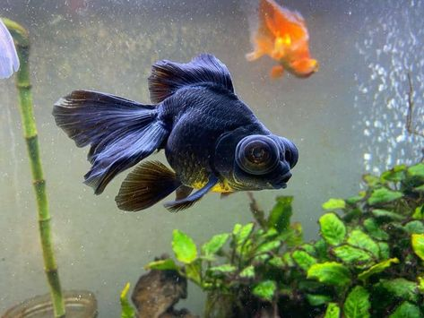 This aquarium goldfish is known for its large, protruding eyes, distinctive body shape, and elongated, flowing fins, making it one of the most popular fancy fish in community aquariums.