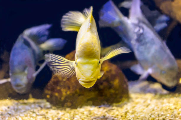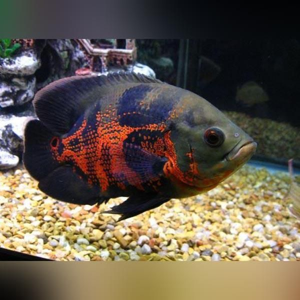 Unlike other brightly colored varieties that stand out in any tank, the natural habitat for this Oscar fish has dull tones like pure gray, brown, and black.