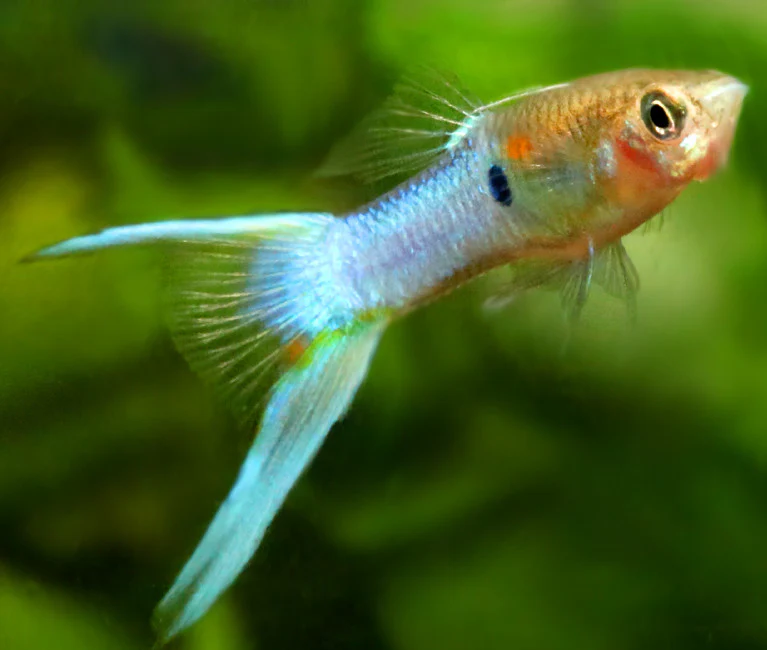 These colorful guppies need carotenoids in food to maintain their shiny spotted scales. You should also maintain optimal water conditions to keep your pets in good health.