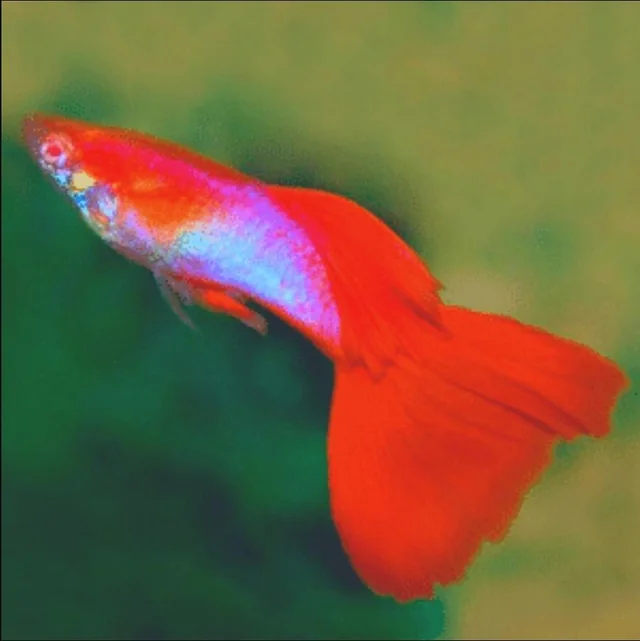 Most guppies have multicolored bodies, but not all of them have unique contrasting bodies like the Red Tail Guppy. This colorful tail guppy often has different colored bodies with fiery red tails.