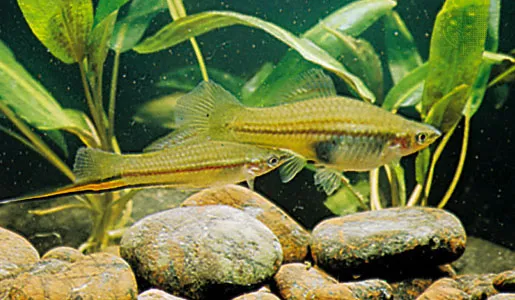 Male swordtails are instantly recognizable by their distinctive sword-like tail extension. These tropical fish are easy to breed, making them ideal for both beginner and experienced aquarists.