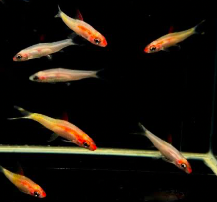 To successfully breed this species, you must distinguish males from females. Note that the female Roseline Barbs are rounder, larger, and have duller scales than the males.
