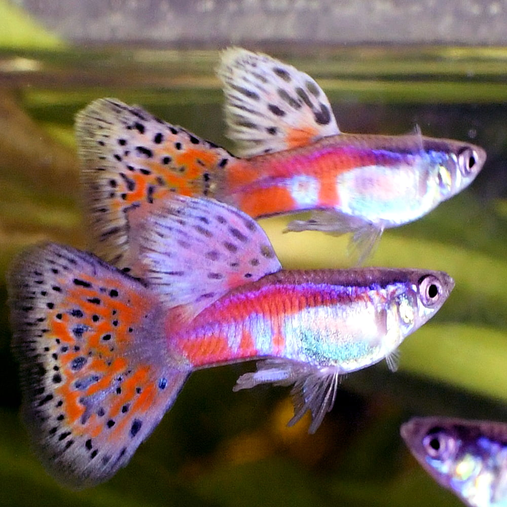The Grass Guppy fin elegance is a combination of its structure and coloration. Although it also has a fan-shaped tailfin like other ornamental and wild guppies, the Grass species has a unique split structure at its tips. Its tailfin looks like grass splinters or strains, hence its name. Foliage-Inspired Fish Traits.